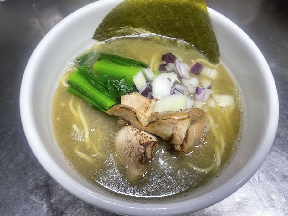 鶏白湯のスープに濃厚な煮干しを合わせてみました。